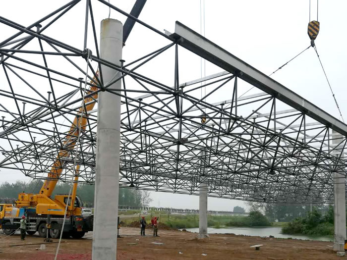 網架工期、進度保障前期充分溝通調研,一對一定制科學有效的設計方案,根據(jù)方案進行材料的生產與制作,降低成本,節(jié)約時間,科學規(guī)范地保證工程進度